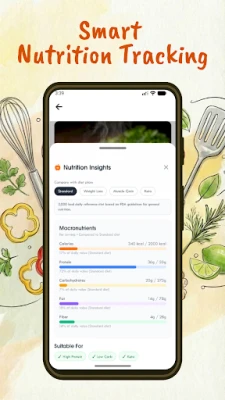 Ponořte se hlouběji do světa zdravého stravování s pokročilými AI funkcemi ChefBit. Získejte detailní nutriční rozbor každého receptu, včetně přesných informací o bílkovinách, sacharidech, tucích, vitamínech a minerálech, vypočítaných na jednu porci. Váš osobní kuchař ChefAI Chatbot je připraven zodpovědět jakékoli kulinářské otázky, navrhnout náhrady ingrediencí nebo vygenerovat recepty přesně podle vašich dietních potřeb či obsahu lednice. Každý týden navíc objevíte nové oblíbené pokrmy díky personalizovaným doporučením v sekci Týdenní výběr.