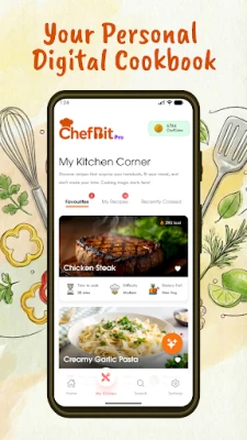 Zapomeňte na plýtvání potravinami a nekonečné hledání receptů. S ChefBit snadno přeměníte suroviny, které již máte doma, v chutné a výživné pokrmy. Revoluční režim Smart Cook Mode vás provede každým krokem s intuitivním vedením, vestavěnými časovači a možností škálování porcí, abyste vždy dosáhli perfektního výsledku. Díky inteligentnímu vyhledávači receptů objevíte jídla podle ingrediencí, kuchyně nebo nálady – od rychlých svačin po večerní speciality.