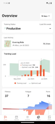 Sledujte, jak se vaše síla, srdeční tep, FTP a průměrná rychlost zlepšují v průběhu týdnů, měsíců a let. Díky pokročilé analýze výkonu jasně uvidíte, jak se vaše kondice postupně vyvíjí. Přehledný tréninkový kalendář shromažďuje klíčové metriky, což vám usnadňuje porovnávání dopadu každého týdne na vaši formu. Navíc, náš graf "Forma a kondice" sleduje úroveň vaší zdatnosti a únavy a předpovídá vaši aktuální cyklistickou formu, čímž vám pomáhá optimálně plánovat tréninky a strategicky se připravovat na závody.