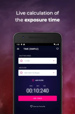 Objevte nejsnadnější a nejrychlejší cestu k přesnému výpočtu expoziční doby. Tato aplikace je ideálním nástrojem pro fotografy používající neutrální šedé filtry. Získejte dokonalé dlouhé expozice bez námahy.
