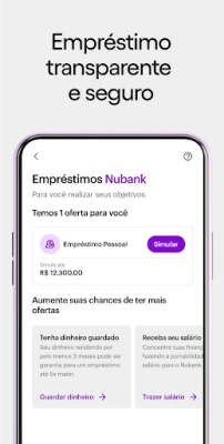 Nubank přináší revoluci do světa osobních financí, transformuje komplexní bankovní služby v dokonale intuitivní a uživatelsky přívětivé prostředí. Jako přední inovátor v oblasti finančních technologií si Nubank klade za cíl poskytovat zážitek, který je naprosto transparentní, jednoduchý a osvobozený od zbytečné byrokracie – přesně tak, jak si představujete ideální správu svých peněz. S námi získáváte plnou kontrolu, bez skrytých poplatků, drobných písem a matoucích podmínek. Vaše finanční pohoda je naší prioritou, a proto jsme vytvořili platformu, kde každý krok je jasný a smysluplný.